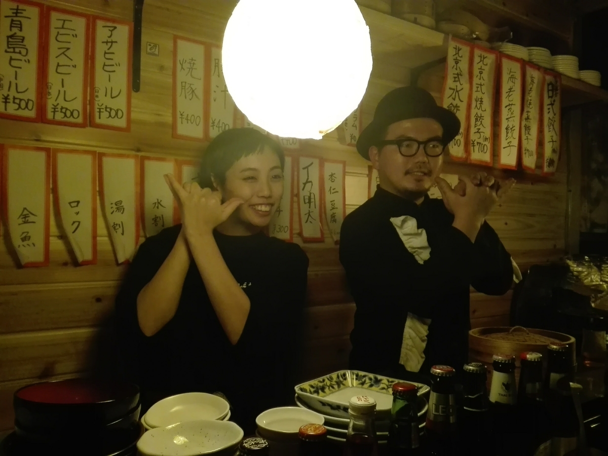 餃子ポーズを作ってくれたマスターとお姉さんを記念に。(ちゃんと許可をもらっています)
