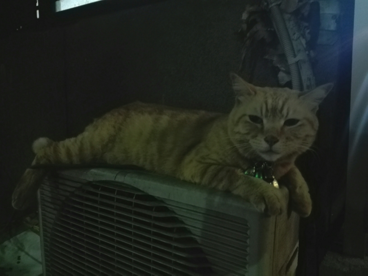 奉還町近くのとある場所によくいる猫さん。室外機の上がお気に入り。ちなみに猫の中では茶トラがいちばん好き。