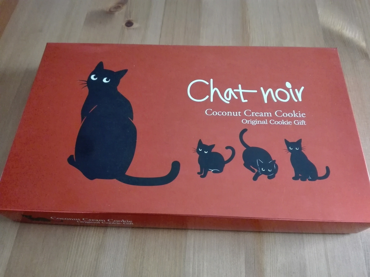 シャ・ノワールはフランス語で黒猫の意味。かわいいだけじゃなくてちゃんとおいしい。ココナッツがふわっと香るクリームクッキー。
